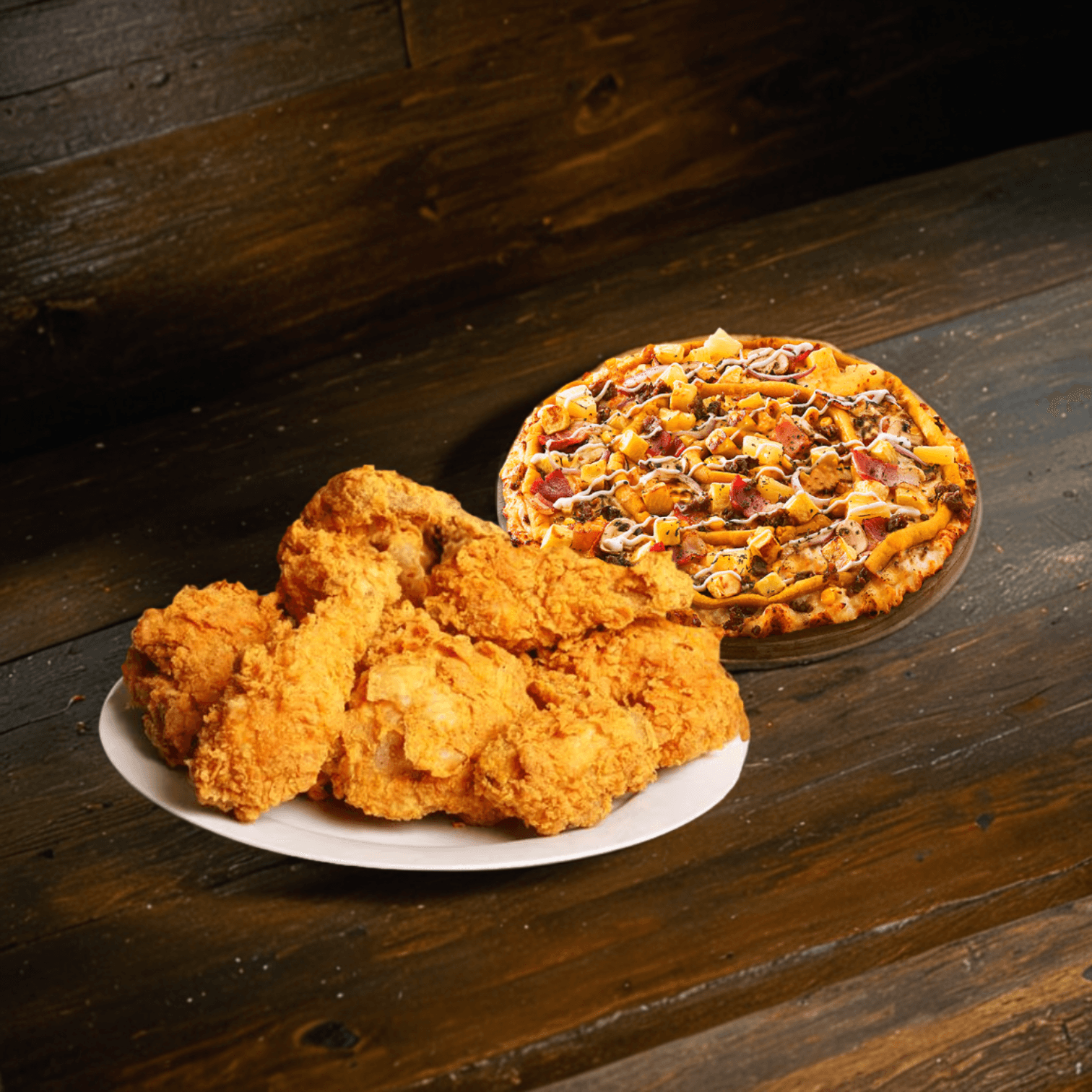 이 방법은 각각의 단일 메뉴 이미지를 합성하여 하나의 세트 메뉴 이미지를 만드는 방식입니다. 이미 존재하는 단일 메뉴 이미지를 재활용할 수 있어 시간과 비용을 절약할 수 있고 필요에 따라 세트 메뉴 구성을 유연하게 변경할 수 있습니다. 치킨과 피자 이미지 두 장으로 세트 메뉴를 만들어보겠습니다.
